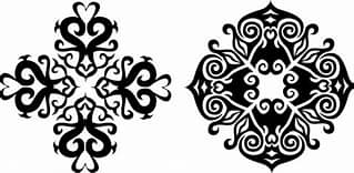 着衣や、首飾り(青い石)、耳飾り、屏風の絵図等、